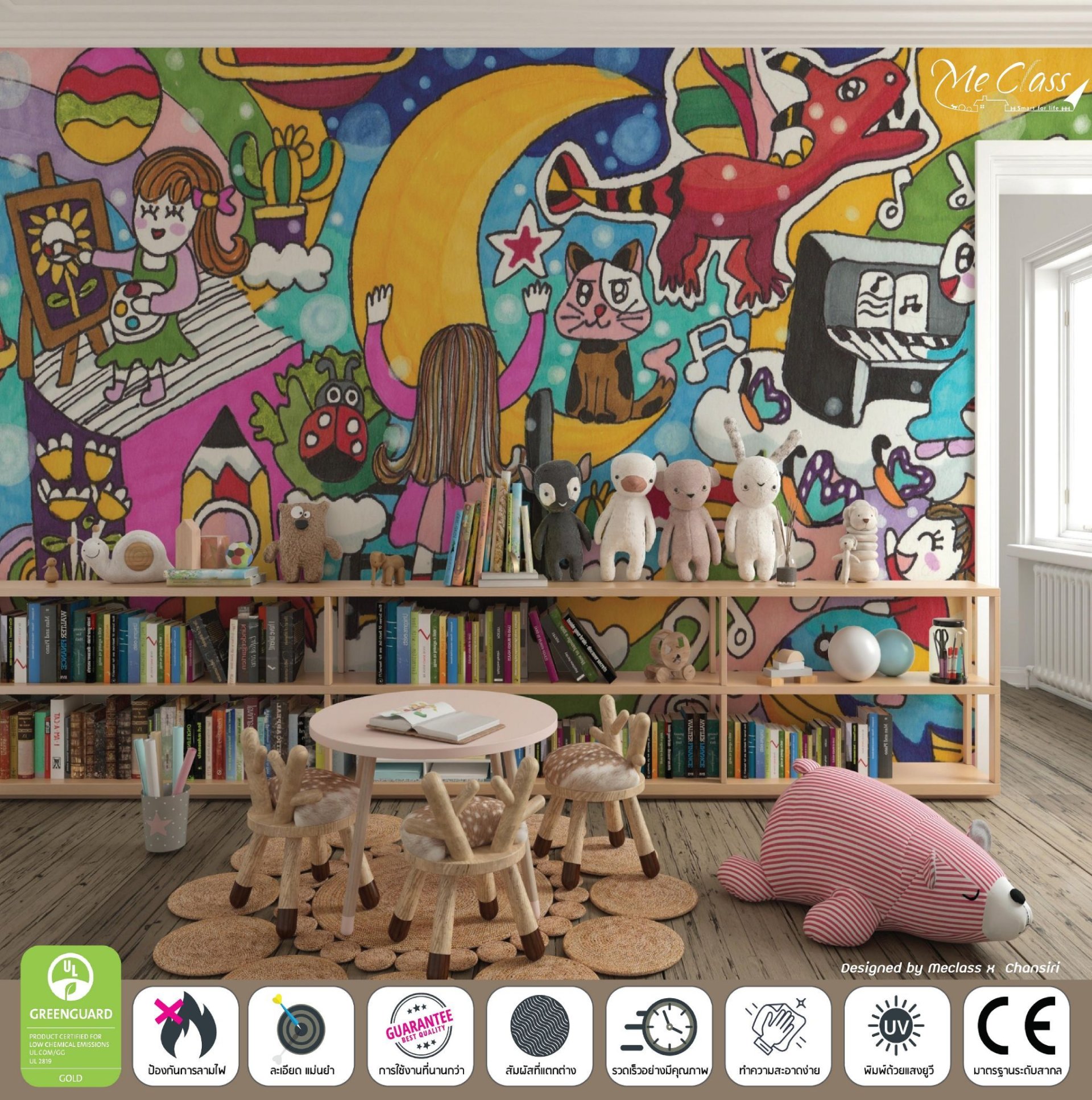 สำหรับโรงเรียน : วอลเปเปอร์สั่งพิมพ์ติดผนัง ตามแบบขนาดไม่เกิน 10 ตร.ม. ได้แก่