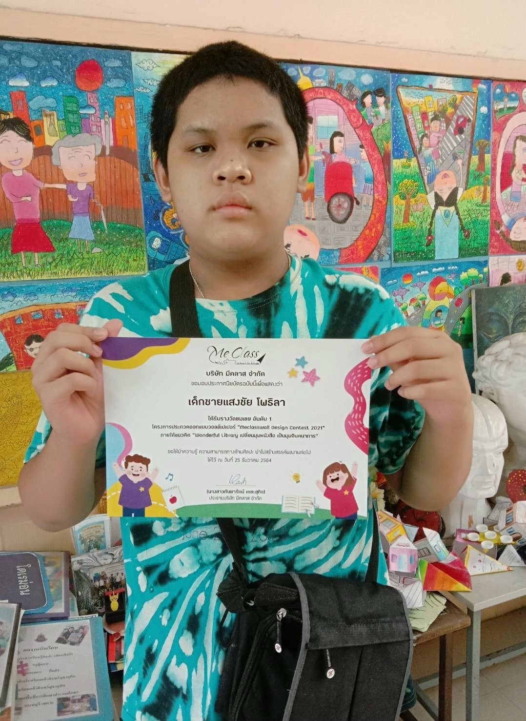 ผมรู้สึกดีใจ และภูมิใจมาก ที่ได้รับรางวัลจากมีคลาส ถึงแม้ผลงานของผมจะยังไม่ได้เป็นรางวัลที่หนึ่งสองหรือสาม แต่ก็เป็นก้าวเล็กๆที่ให้พวกเราได้มีโอกาสพัฒนาความสามารถตนเอง