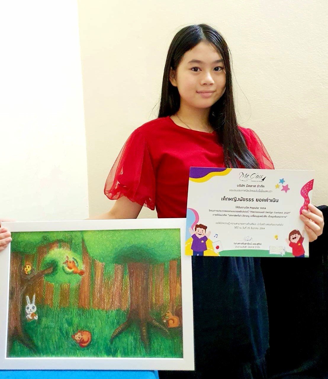บทสัมภาษณ์ : รู้สึกดีใจและภูมิใจมากๆค่ะที่หนูได้รับรางวัล popular vote เพราะหนูตั้งใจวาดมากๆ ขอบคุณ Me Class มากๆนะคะที่จัดกิจกรรมดีๆแบบนี้ค่ะ ทำให้หนูได้มีโอกาสเข้าร่วมกิจกรรมนี้และได้รับรางวัลด้วยค่ะ