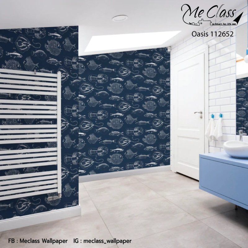 สำหรับคุณลูกค้าที่ชื่นชอบโทนสีฟ้าคราม ตกแต่งร่วมกับสีขาว สร้างบรรยากาศให้น่าพักผ่อน ซึ่ง “สีฟ้า” เป็นสีสันของท้องทะเล การตกแต่งสไตล์นี้ จะให้อารมณ์สัมผัสไปกับธรรมชาติแห่งท้องทะเล ที่ให้ความรู้สึกเหมือนได้พักผ่อนในรีสอร์ทริมชายหาด หรือหากใครที่ทำธุรกิจรีสอร์ทโซนแหล่งท่องเที่ยวในรูปแบบทะเลต่างๆ อาจนำสไตล์วอลเปเปอร์ห้องน้ำลายนี้ไปเลือกใช้ได้ค่ะ