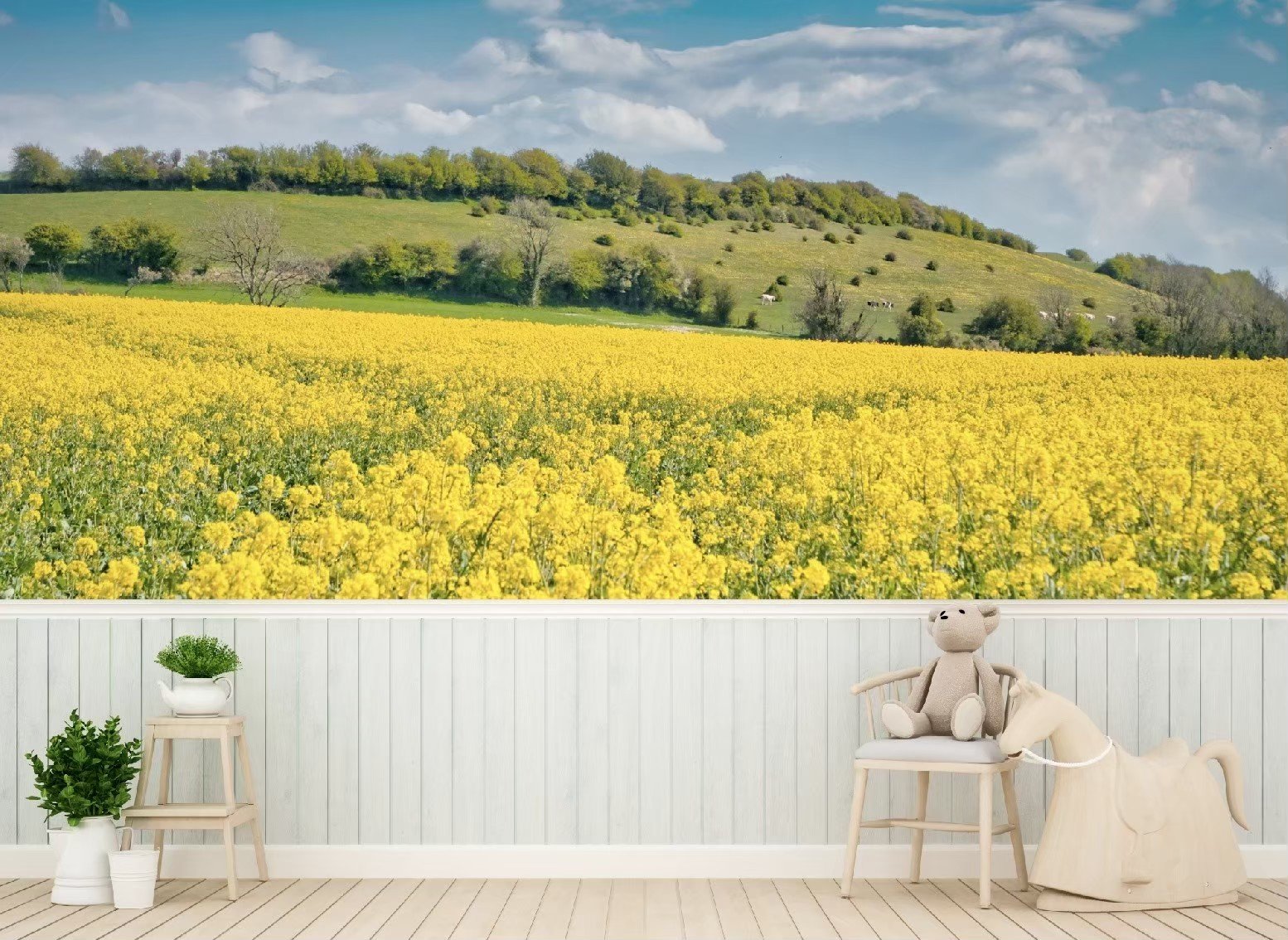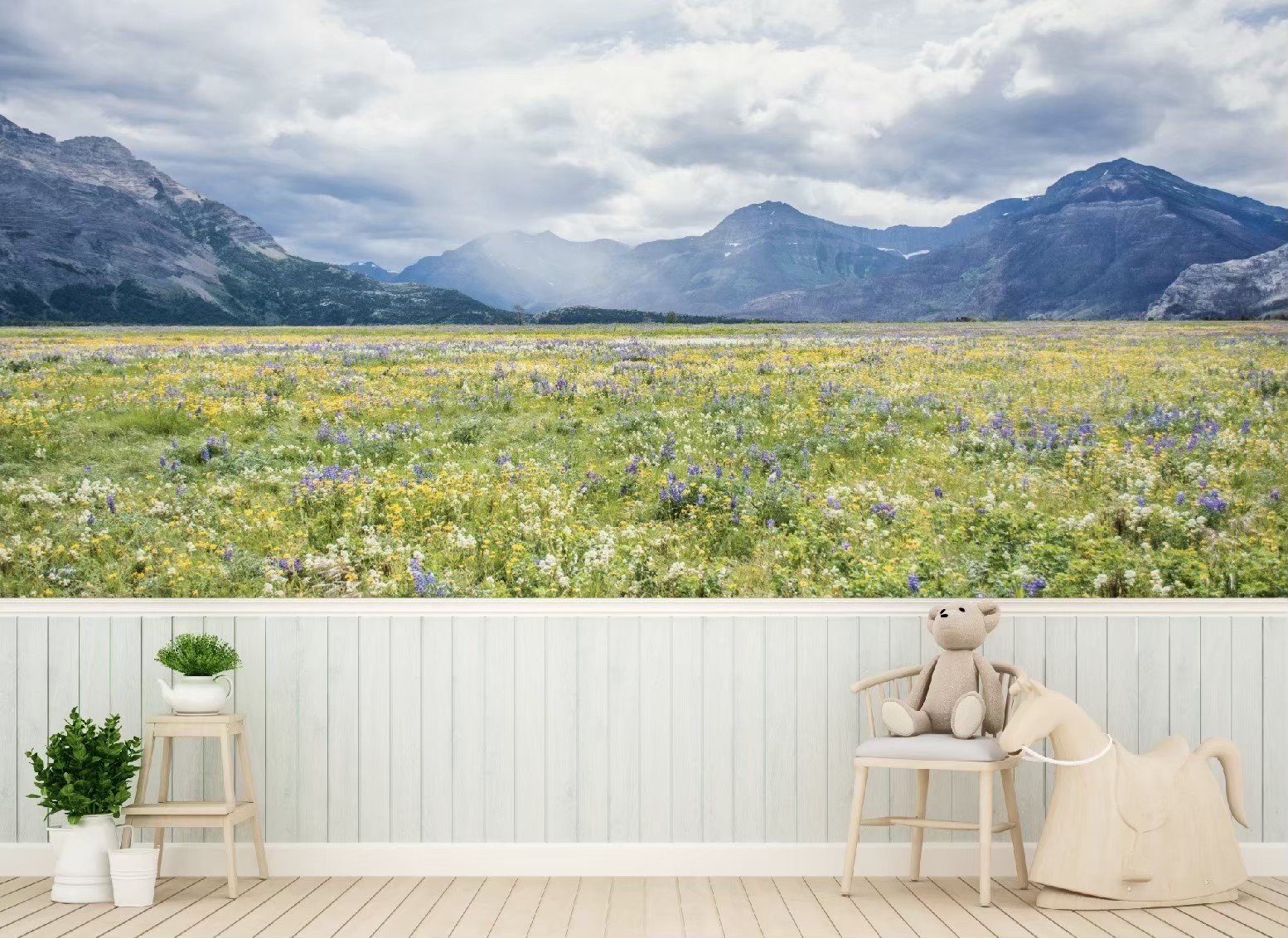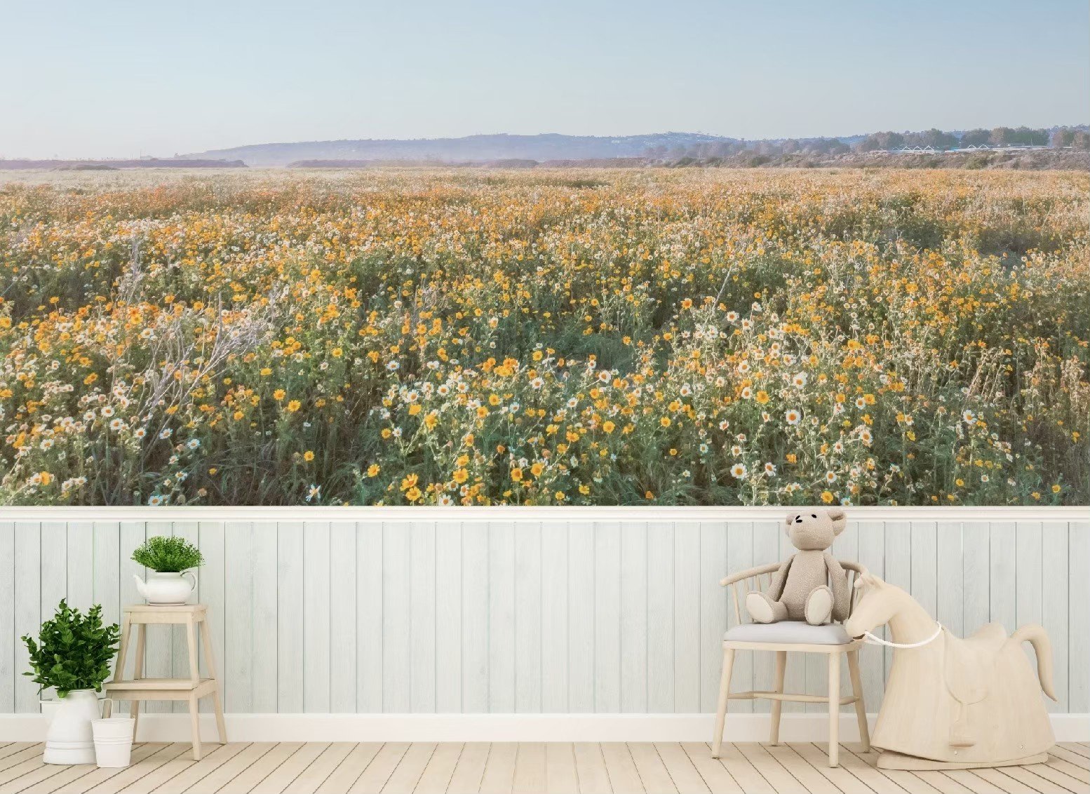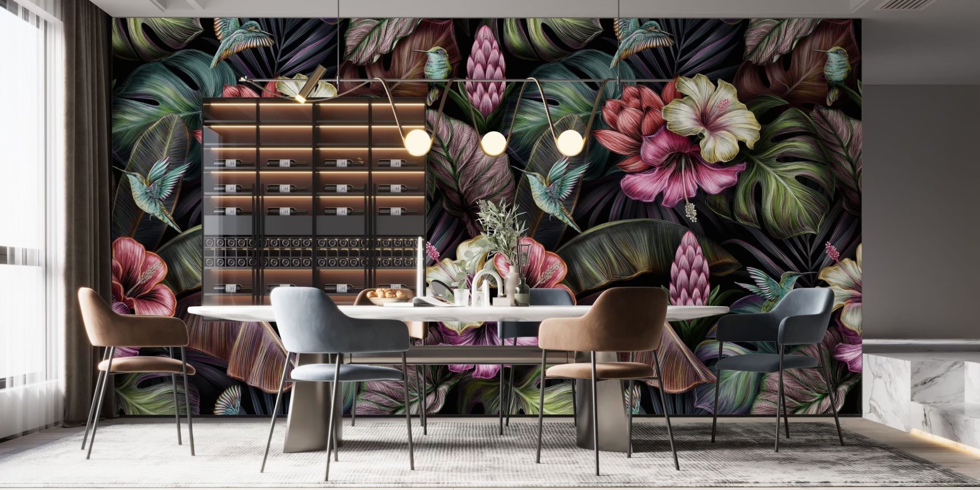 ตกแต่งห้องรับประทานอาหาร ด้วยวอลล์เปเปอร์สั่งพิมพ์ ด้วยลายดอกไม้แบบเสมือนจริง ฟิวนั่งอยู่ท่ามกลางสวนดอกไม้ในเทพนิยาย