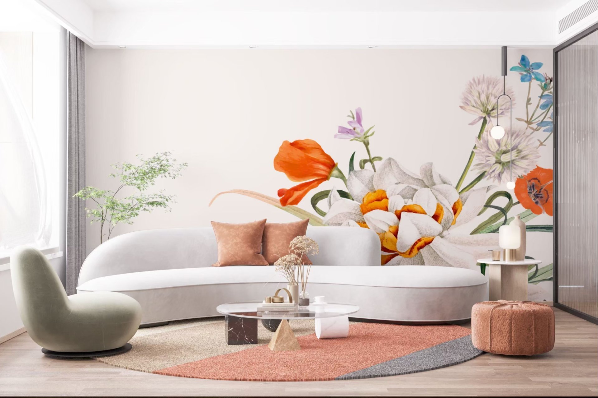 ตกแต่งห้องรับแขก ด้วยวอลล์เปเปอร์สั่งพิมพ์ลายดอกไม้วินเทจ สวยแบบมีคลาส มีสไตล์ในแบบของคุณ