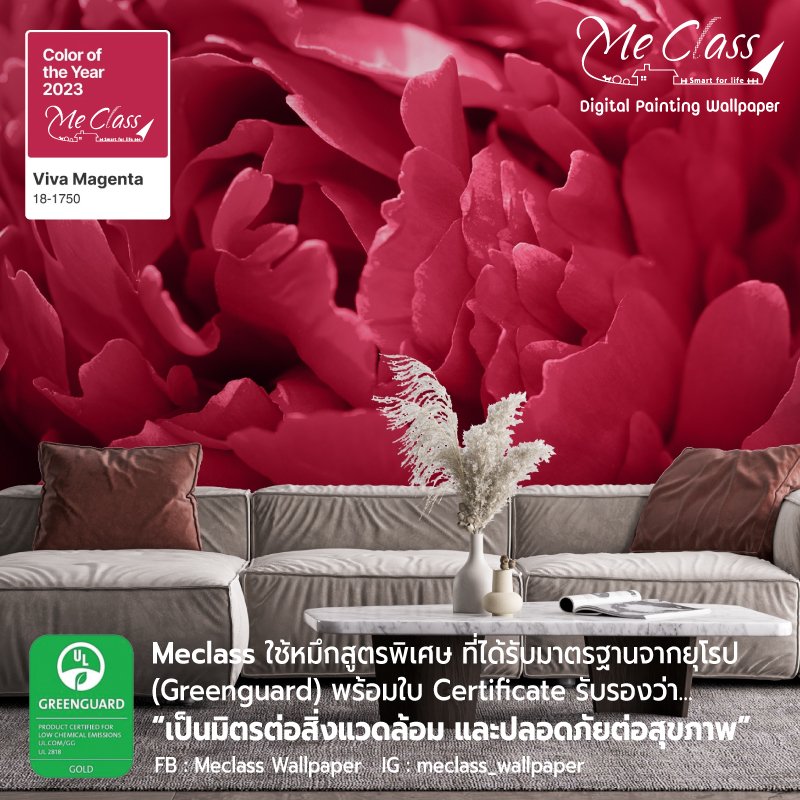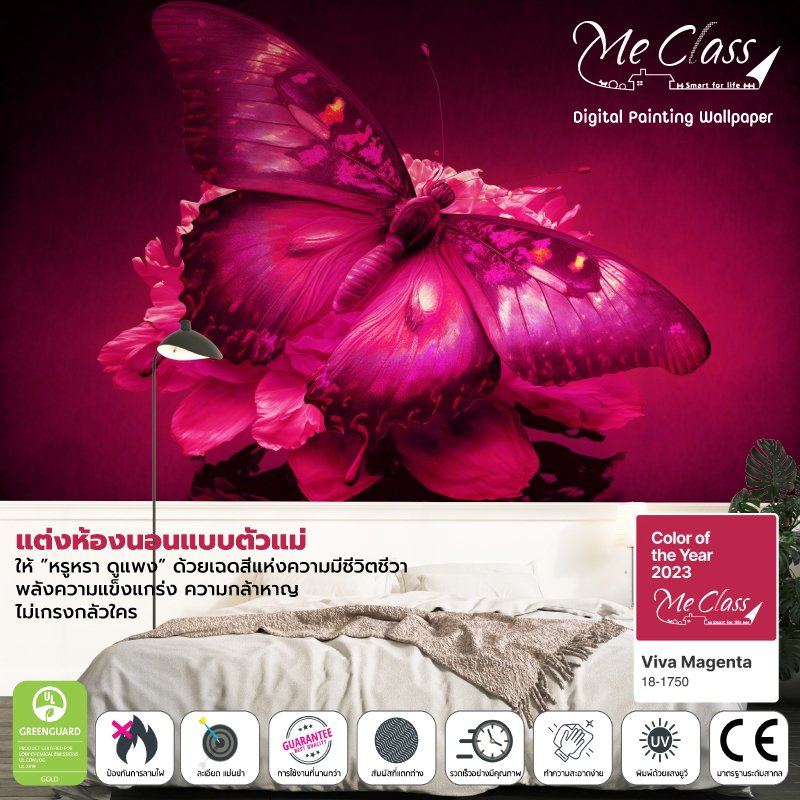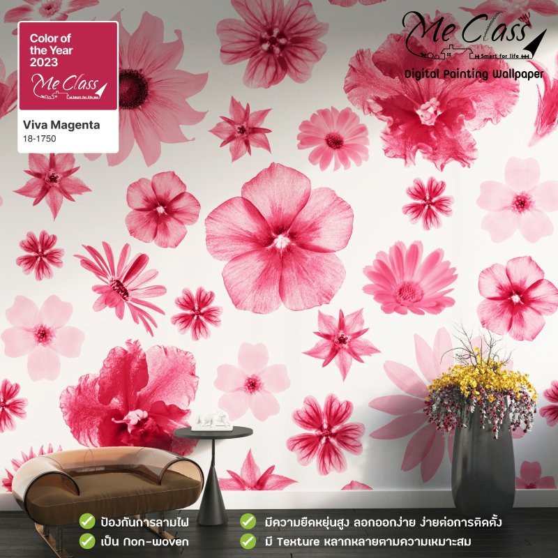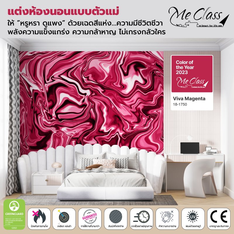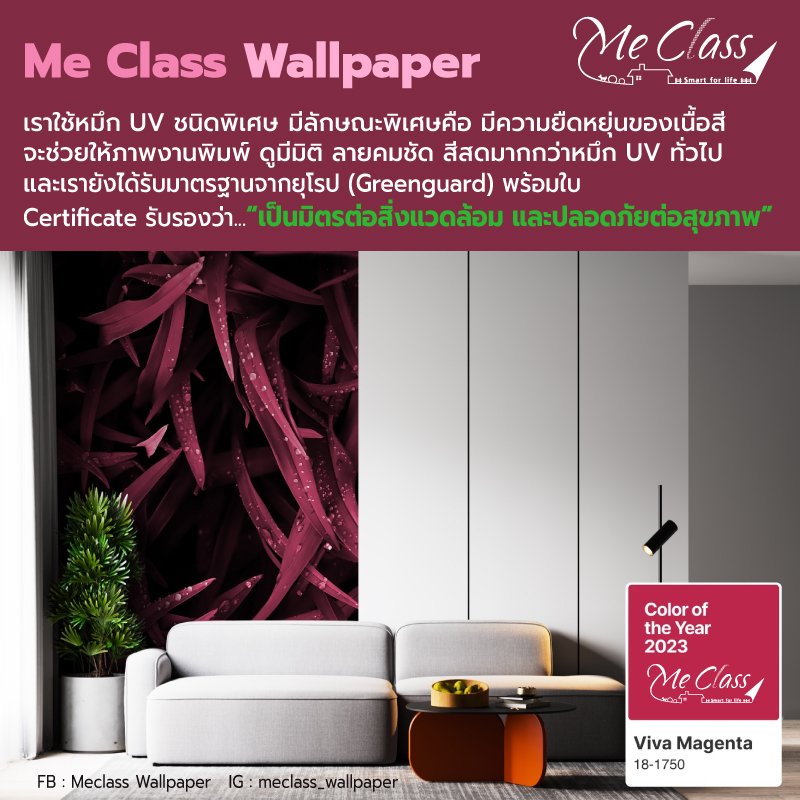 “Me Class Wallpaper” ได้นำเฉดสี Viva Magenta มาสร้างสรรค์ในงานวอลล์เปเปอร์ติดผนัง ให้เกิดความสวยงาม แปลกใหม่ พร้อมรับสิ่งดีๆเข้ามาในบ้านและผู้พักอาศัย รวมถึงส่งเสริมให้ผู้พักอาศัย มีความกล้าหาญ แข็งแกร่ง ไม่เกรงกลัวใคร เป็นคนที่มองโลกในแง่ดี คิดบวก มี Passion และแรงบันดาลใจในการทำอะไรใหม่ๆอีกด้วย