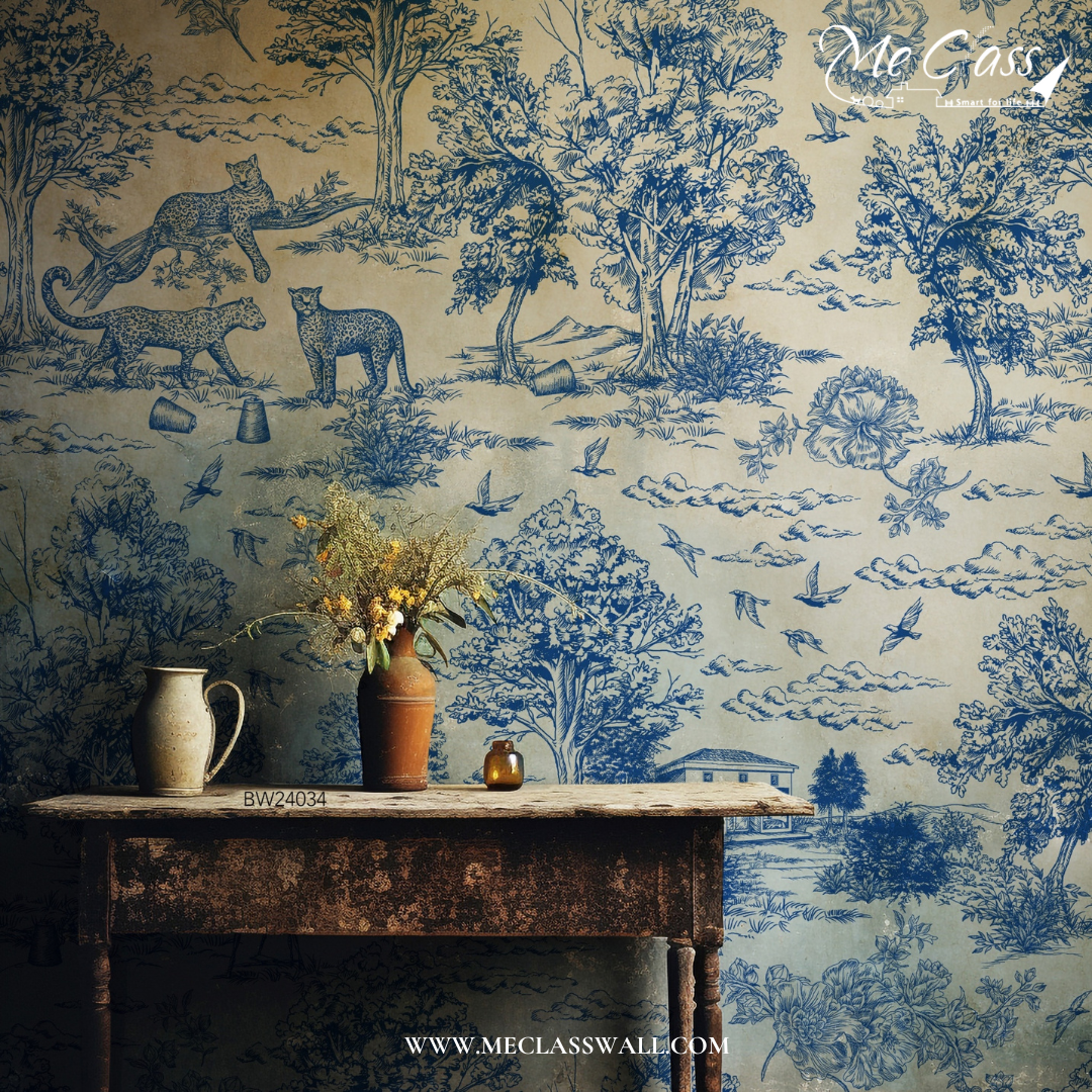 ตกแต่งผนังหัวเตียงนอนไปกับลายยอดนิยมที่สุดในคอลเลคชั่นนี้ วอลเปเปอร์สั่งพิมพ์ลายเส้นสีฟ้าขาว (Blue White Wallpaper) ลายภาพวาดบ้านในชนบท สวยเก๋เท่ ไม่เหมือนใคร เหมาะกับทุกเพศทุกวัย
