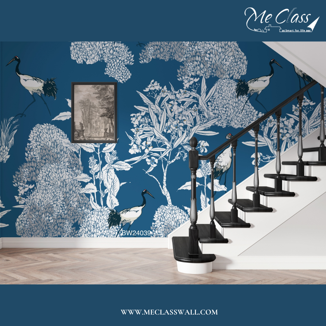 งานอินเตอร์ ลายคมชัด สีฟ้าสดใส ต้องลายนี้เท่านั้น!! พบกับวอลเปเปอร์สั่งพิมพ์ลายเส้นสีฟ้าขาว (Blue White Wallpaper) เปลี่ยนแนวBGสีขาวมาเป็นโทนสีฟ้าตกแต่งบริเวณโถงบันไดกันบ้าง สวยไปอีกแบบ ดูมีมิติ แปลกตาและไม่เหมือนใคร