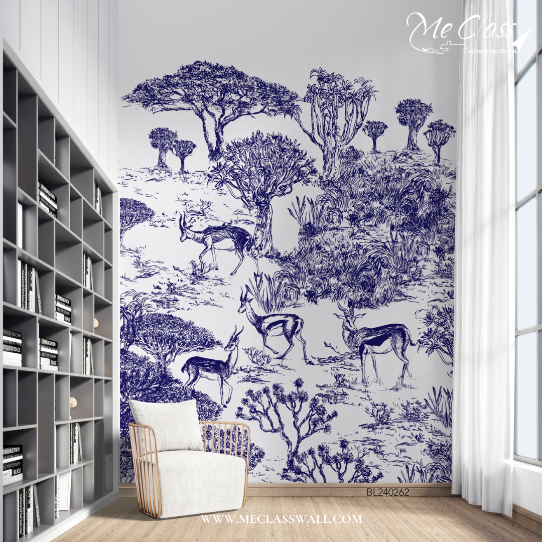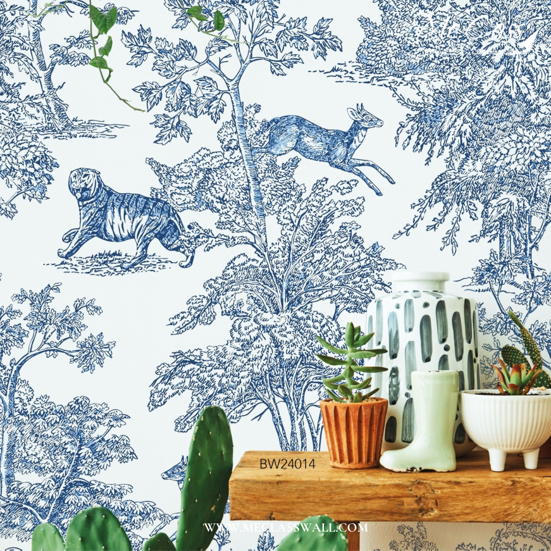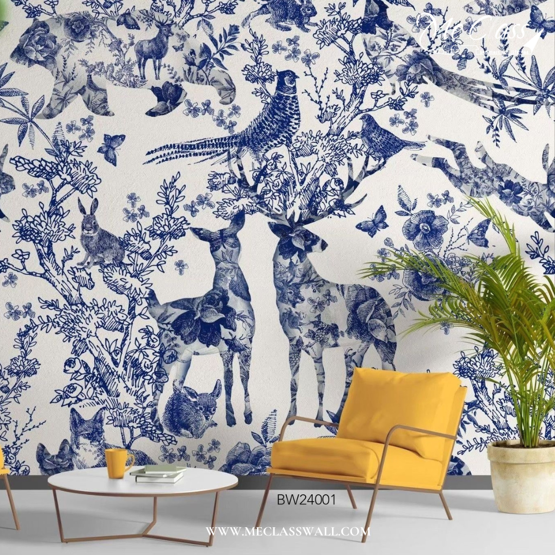 วอลเปเปอร์สั่งพิมพ์ลายเส้นสีฟ้าขาว (Blue White Wallpaper) ลายนี้เป็นลายยอดฮิตตลอดกาลของบริษัทเรา ในช่วง 2 ปี ที่ผ่านมา มียอดสั่งพิมพ์มากที่สุดในคอลเลคชั่นเลยก็ว่าได้ ลายภาพวาดสัตว์บ้านน้อยใหญ่ มีดีเทลความน่ารักของน้องกวาง นก กระต่าย เด็กและผู้ใหญ่ ใครเห็นเป็นต้องชอบอย่างแน่นอน!