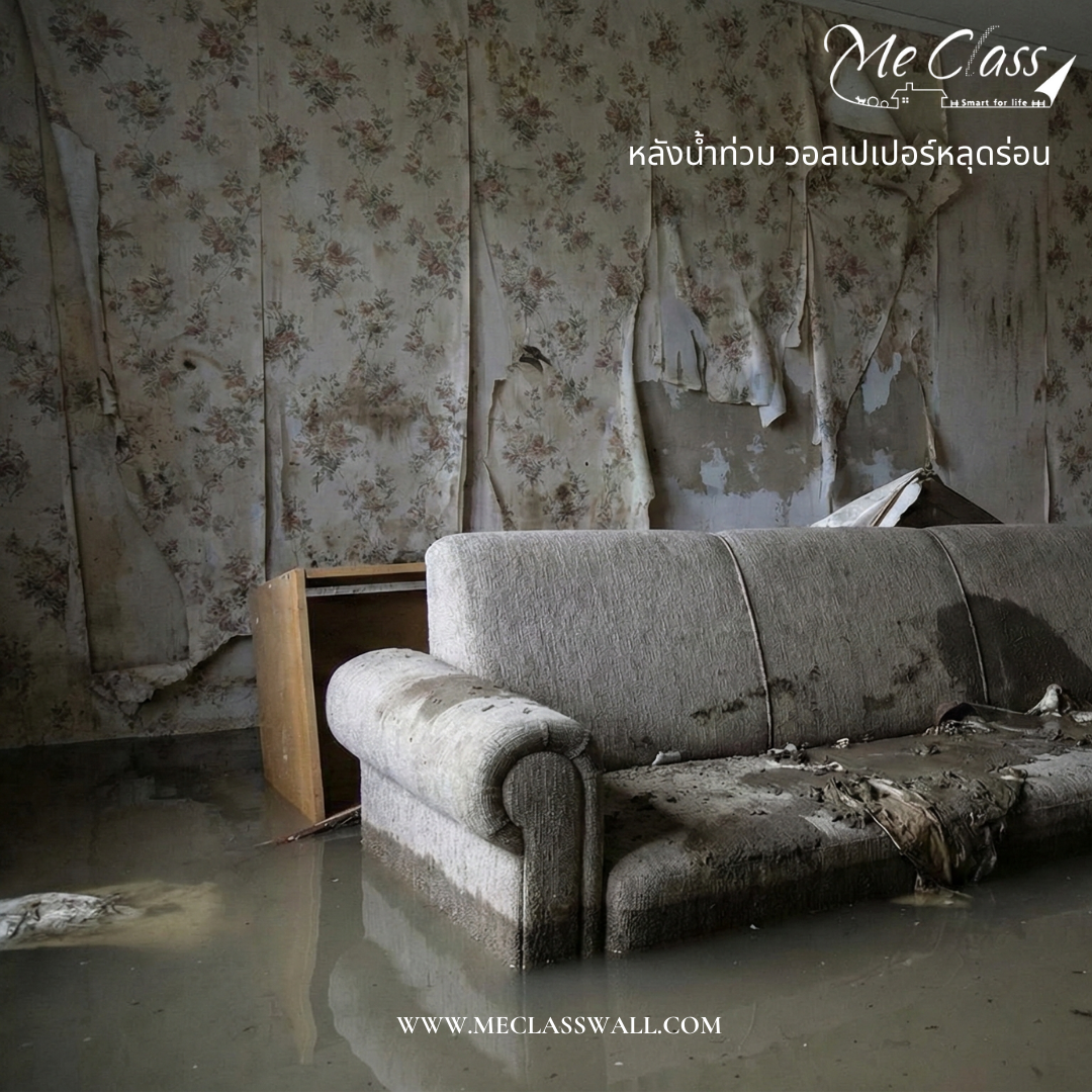 วอลเปเปอร์: วอลเปเปอร์ที่ถูกน้ำท่วมควรลอกออกทันที เพราะเป็นแหล่งสะสมความชื้นและเชื้อราได้ดีมาก